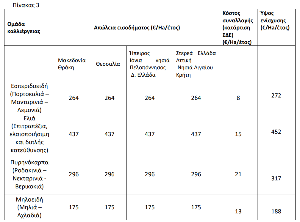 Συγκεκριμένα επιλέξιμες στο πλαίσιο της δέσμευσης Γ είναι οι κάτωθι δενδρώδεις καλλιέργειες:
